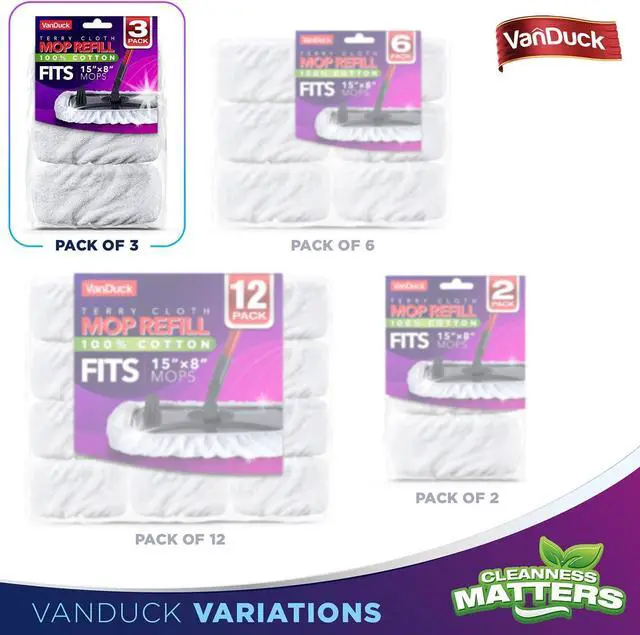 Includes 3 Terry Cloth Mop Covers (Mop is not included)