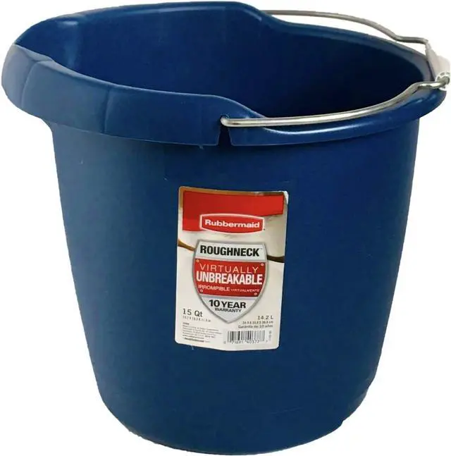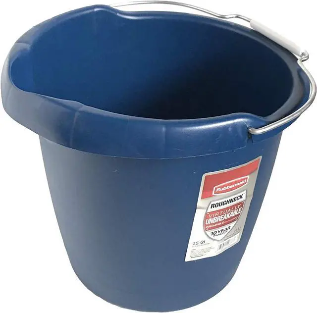 Rubbermaid Commercial Products 15QT Round Bucket, Blue, Comfortable/Durable Pour Handle, Sturdy Pail Bucket for Household Cleaning/Mopping