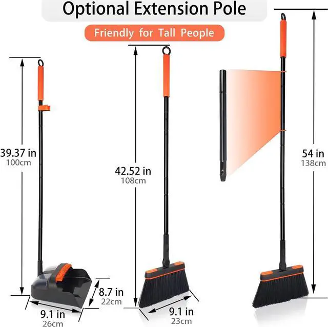 KEEP YOUR HANDS CLEAN: The household brooms feature built-in comb teeth, ensuring dirt makes its way into the upright dustpan. No need to worry about polluting your hands to remove hairs (from yourself or your loving dog/cat) and other debris.