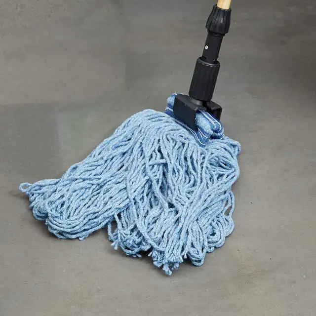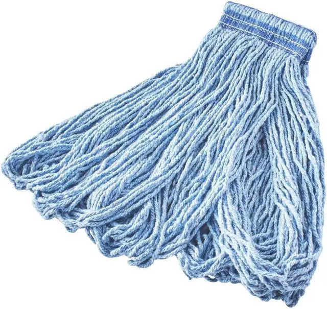 Rubbermaid Commercial Products Universal Blend Mop, 24-Ounce, Blue Headband, Heavy Duty Industrial Wet Mop For Floor Cleaning Office/School/Stadium/Lobby/Restaurant, Pack of 12