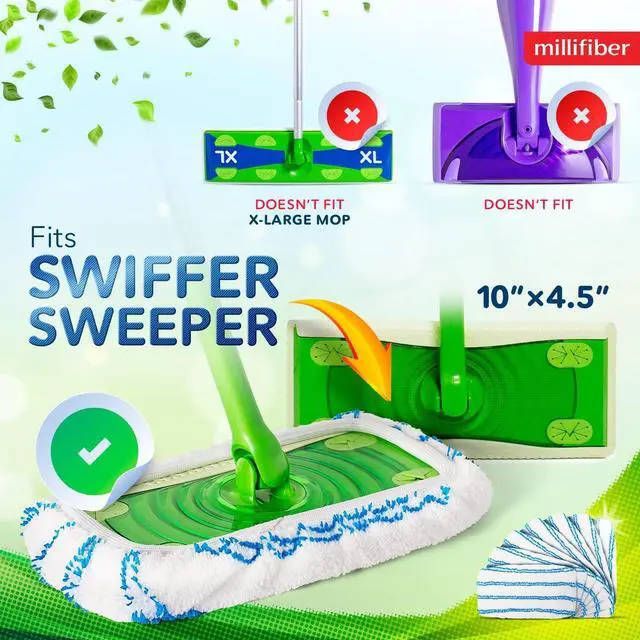Machine Washable Up to 300 times. Microfiber Mop Refills Fit Swifter Sweeper Mop size 10, 3' ' x 4, 4' '