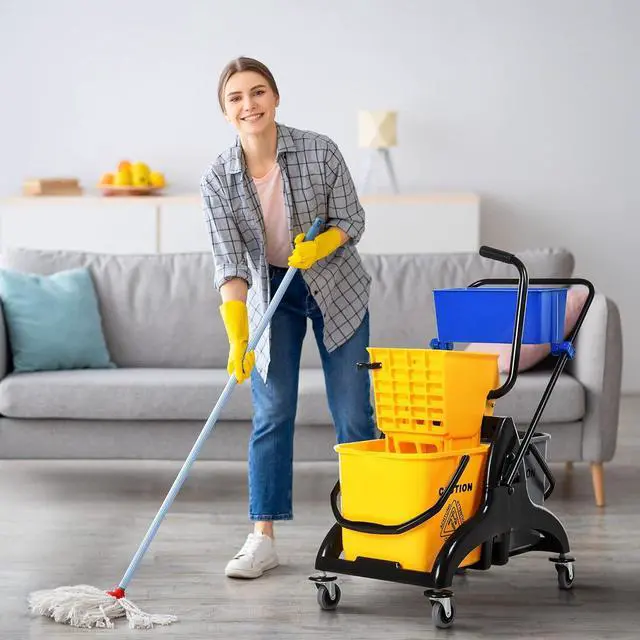 Water-Separation Design: this mop bucket with wringer features two handy water-separation buckets to help keep clean and dirty water separate while mopping.