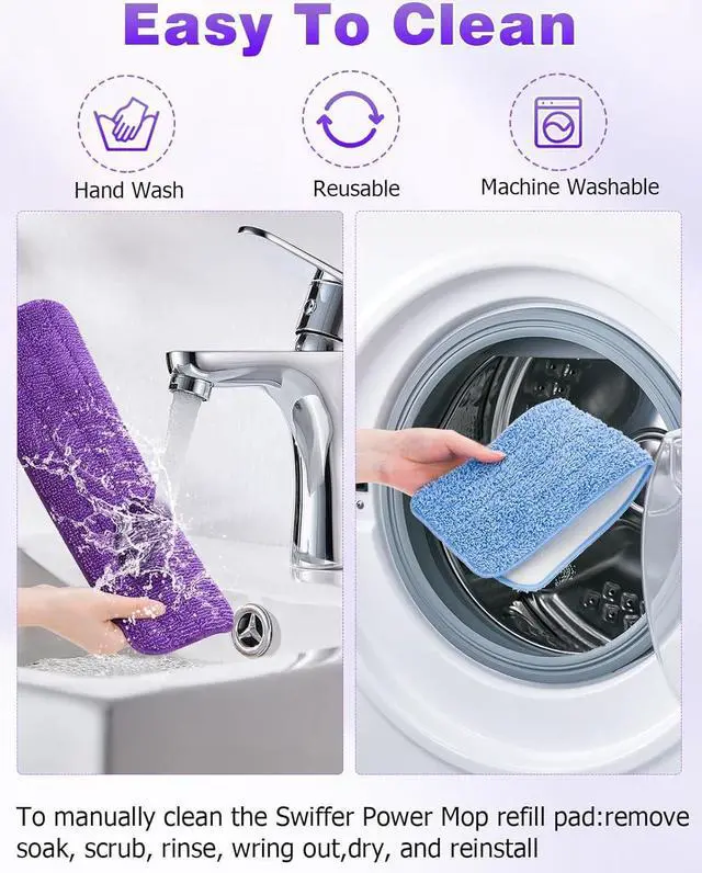 Reusable mop pads for Swiffer compatible with Swiffer PowerMop and other spray mop13~15inch). These mop pads are designed for easy installation and replacement, making them very convenient to use without requiring professional cleaning skills. Simply attach the mop pad to the mop base, and you can start cleaning with ease.