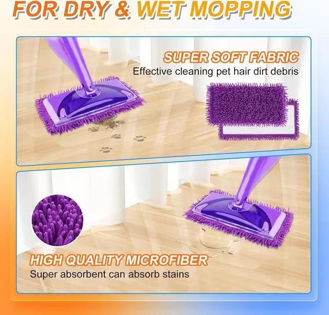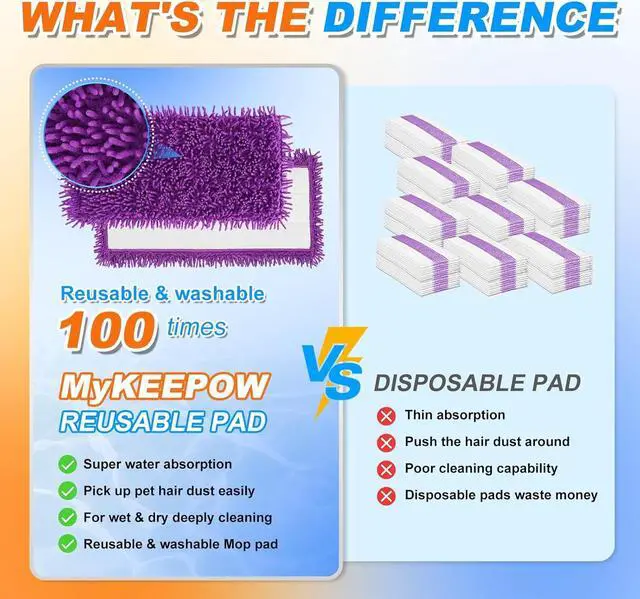 FOR DRY & WET MOPPINGReusable wet jet pads have super absorbent ability, can be use for dry and wet mopping. For wet use, Soft microfiber pads quickly remove oil and stains, For dry use, pick up hair dust effectively. MyKEEPOW reusable mop pads must be your helper for home cleaning.