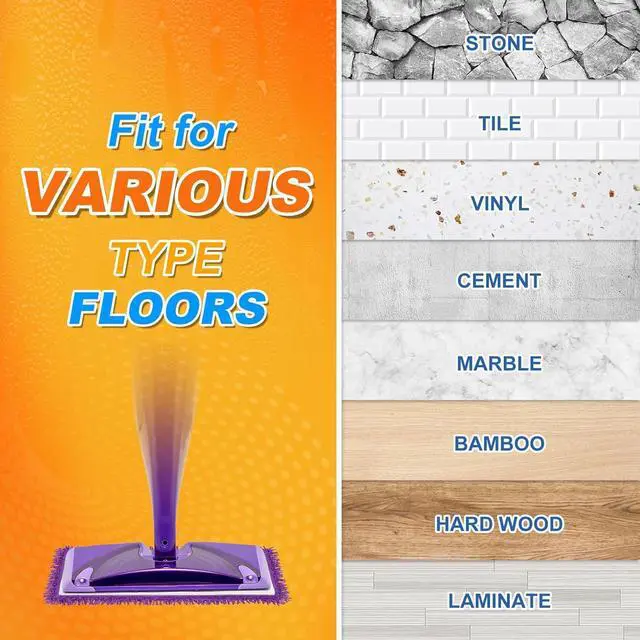 FIT FOR ALL FLOORMicrofiber replacement pads for swiffer wetjet mop is suitable for all sealed floors, stone, hardwood, wooden, ceramic, laminate, and marble floors. It will not scratch the floor and leave marks, and clean faster and more efficiently, saving you time and making your life better.