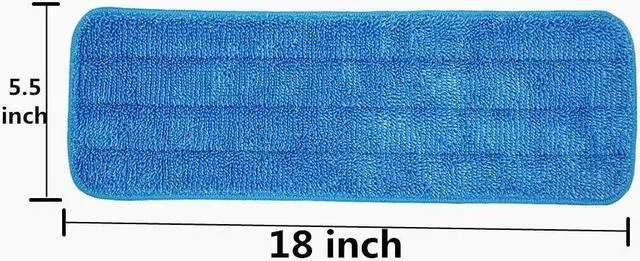 PRODUCT SIZE- A pack of 6 professional microfiber mop replacement heads, color: bluemop pad each piece size about 18" x 5.5 " fits 15 16 17 18 inch velcro mop frames and hardware