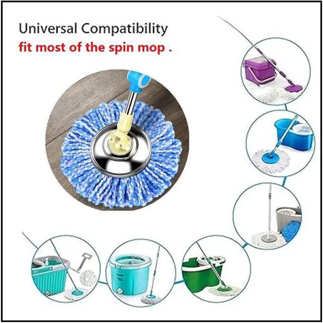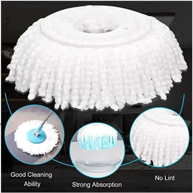 Easy To CleanSpin Mop Refill Replacement Mopping Heads Easy Cleaning. These microfiber spin mop head replacements use deep-cleaning microfiber to remove and absorb tough dirt and grime. This high-quality refill is made of microfiber for streak-free cleaning.
