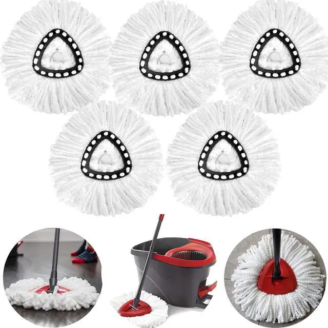 5 PACK LIGHTWEIGHT MOP HEADS: Package includes 5 pack easy wring replacement spin mop heads, light weight and effortless to use; Perfect for quick cleanup and spin mop refill will not scratch the cleaning surfaces