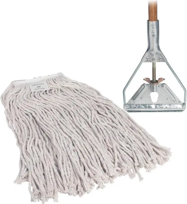 Cotton Wet Mop is ideal for light or heavy jobs. Lightweight 15/16" x 60" natural wood handle will not rust. Mop includes a 24 oz. mophead made from absorbent, natural four-ply cotton yarn for damp mopping and scrubbing efficiency. Refillable mophead is made with a high percentage of recycled material.