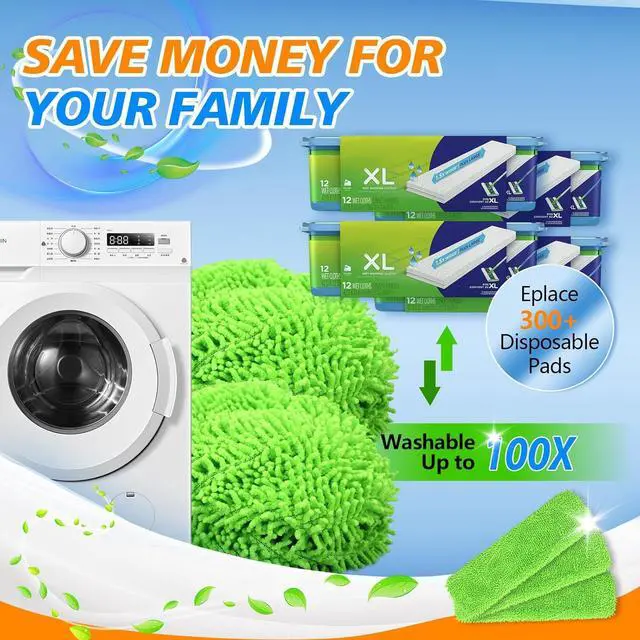 Reusable and Save Your Money: These reusable xl wet pads refills are machine washable and can be wash up to 100+ times. One reusable refill pad is equal to 100+ disposable mop cloths, you needn' t rely on expensive disposable mop cloths any more. Just choose our mop pads refills, save a lot of money for you every year and reduce waste for the earth