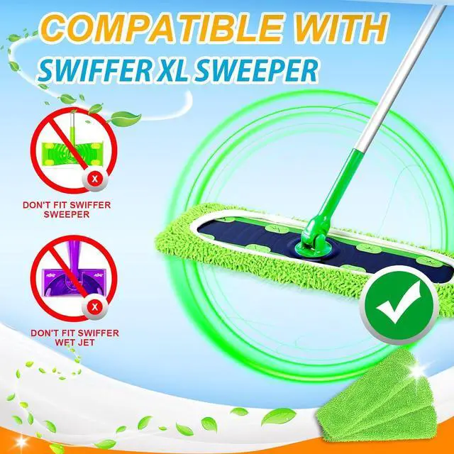 Swiffer Sweeper XL Mop: The reusable mop pads are specially designed to be compatible with swiffer sweeper XL mop (mop is not included). They are not fit for swiffer wetjet, power mop, and standard swiffer sweeper. Equipped with strong double-sided elastic, they easily attach to most 17inch mop heads for everyday cleaning use