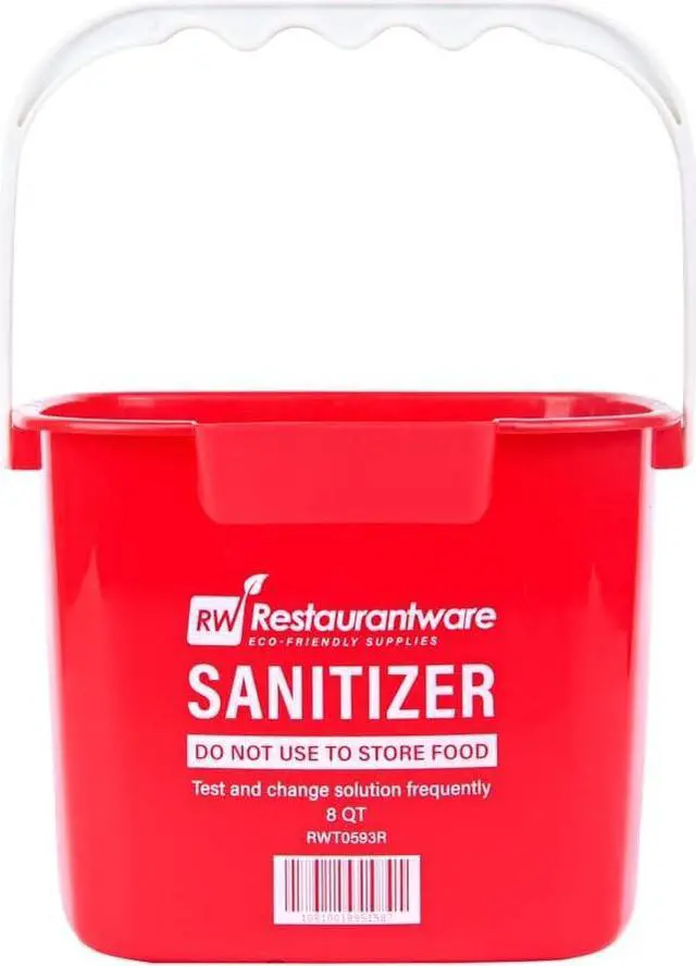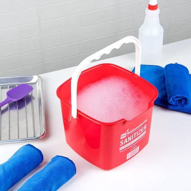 COLOR-CODED ORGANIZATION: Quickly spot this bucket in your kitchen! This color-coded red pail reads " SANITIZER", making it easy to identify and organize in your cleaning equipment area.