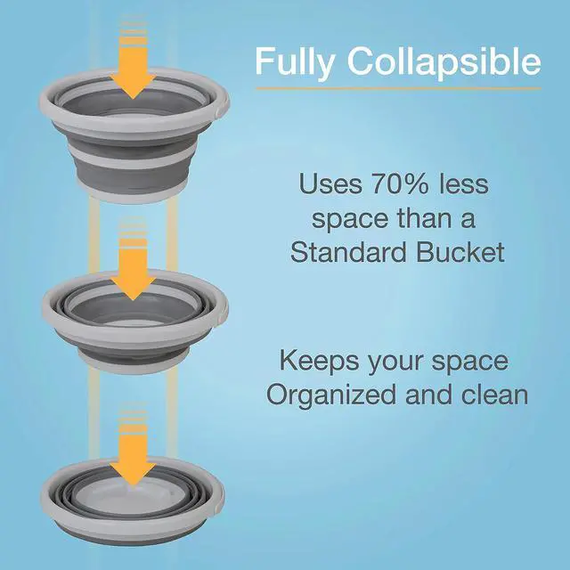 SPACE SAVING - With 2.6 Gallon capacity this is a practical, space saving bucket that locks in place when in use. This bucket measures only 2 tall when folded, so it can be easily stowed away. This bucket is fantastic to keep on hand for all occasions.