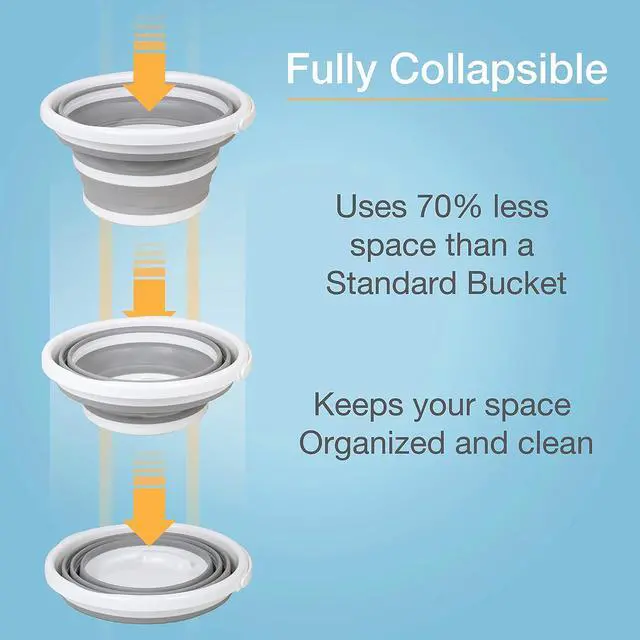 SPACE SAVING - With 2.6 Gallon capacity this is a practical, space saving bucket that locks in place when in use. This bucket measures only 2 tall when folded, so it can be easily stowed away. This bucket is fantastic to keep on hand for all occasions.