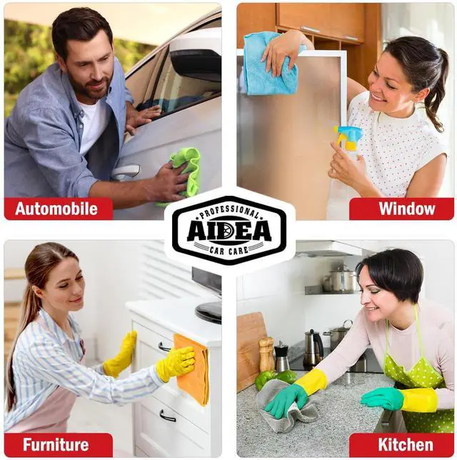 AIDEA soft microfiber cloths are highly absorbent. With a simple one-hand motion, these cloths absorb water faster and more efficiently than cotton, ensuring quick drying. They are safe for all hard surfaces, making them perfect for use in the kitchen, on windows, and for your car cleaning needs.