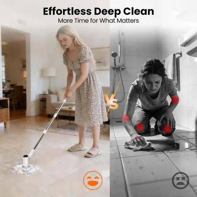 PROTECT YOUR BACK & KNEES: Tired of knee pain after scrubbing the bathtub? Our adjustable 8"-47" telescoping pole lets you clean floors, showers, and walls while standing completely upright. No more bending. No more kneeling. Designed for anyone with back pain, arthritis, or simply tired of sore knees after cleaning day.
