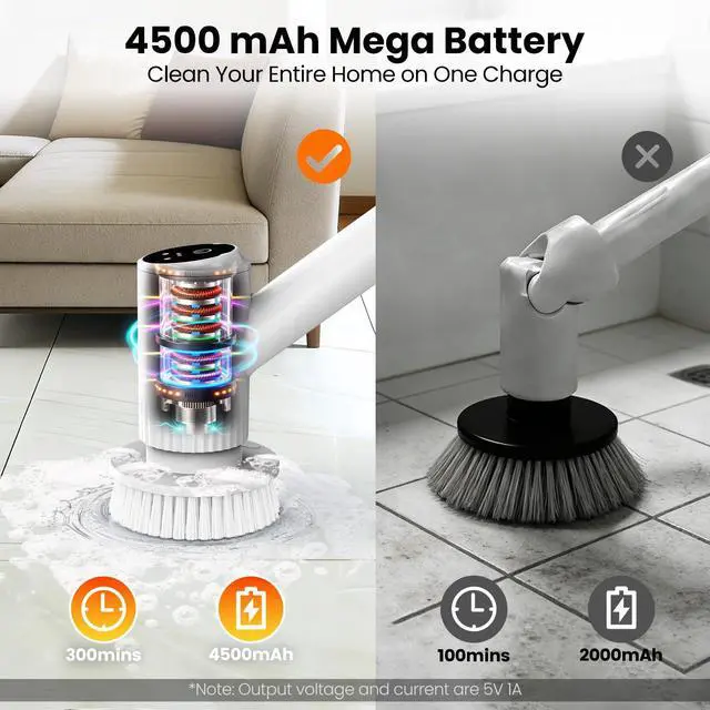 ONE CHARGE CLEANS YOUR ENTIRE HOUSE: Forget weak batteries that die halfway through the kitchen. This powerhouse packs a 4500mAh battery that runs for 5 hours straightenough to scrub every bathroom, floor, and tile in your home. When it finally needs juice, the USB-C port charges just like your phone. No bulky chargers. No waiting.