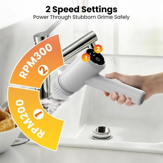 450RPM POWERDIRT DOESN'T STAND A CHANCE: Hand-scrubbing is obsolete. With 2 speed settings, you're in control: Low for delicate countertops, High for blast mode. Watch soap scum, kitchen grease, and dried-on mud dissolve in seconds. What used to take 30 minutes of elbow grease now takes 5 minutes of effortless gliding.