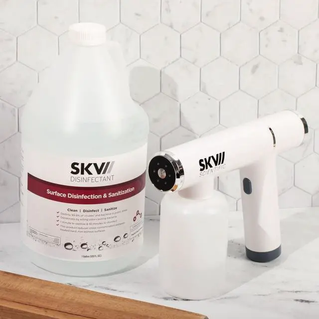 Maintaining a clean and hygienic environment has never been more crucial, and we understand the importance of safeguarding your health and well-being. We're proud to introduce SKV Cordless Atomizing Sprayer. It's a powerful tool designed to effectively spray a fine mist onto surfaces without the need to wipe after application, helping to keep your surroundings safe and pristine. Protect what matters most by using the SKV Atomizing Sprayer with SKV's Surface Disinfection and Sanitization solution. Whether you're a concerned parent, a diligent business owner, or simply someone who values a clean and healthy living space, our product is your reliable partner in germ defense. Don't compromise cleanliness for safety or vice versa. Choose SKV to experience the ultimate in germ-fighting technology.