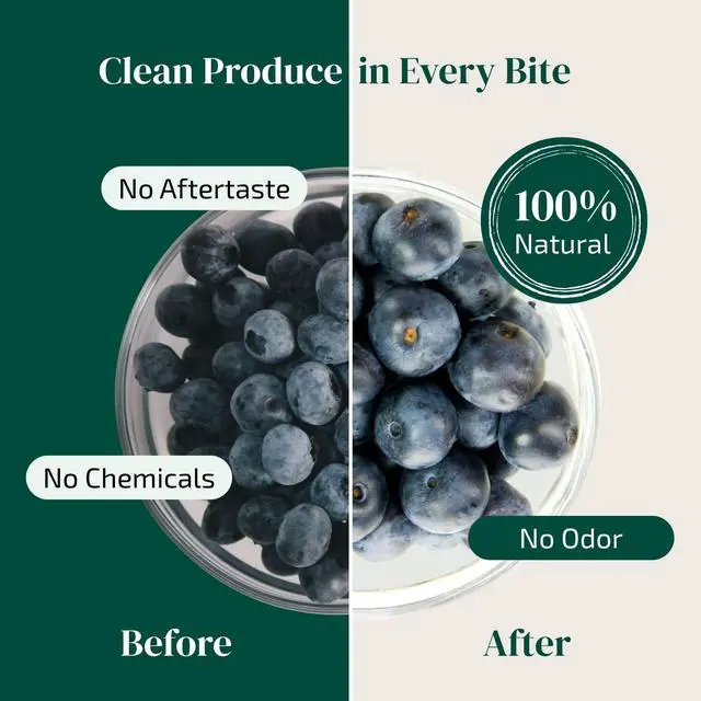 No Aftertaste, No Odor: Leaves behind no aftertaste or residue, so you can enjoy the pure, clean flavor of your produce. Unlike some veggie washes, this powder rinses off clean and wont alter the taste of your food.