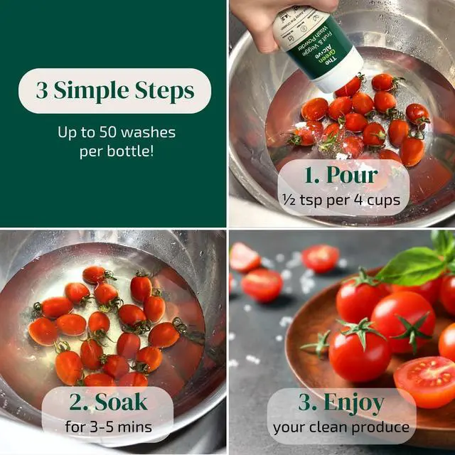 Easy to Use, Great for All Produce: Use with fruits, vegetables, berries, or greens. Just dissolve in water, soak your produce, gently rub, then rinse.