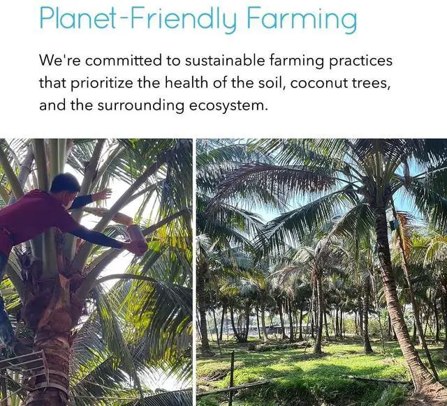 We're committed to sustainable farming practices that prioritize the health of the soil, coconut trees, and the surrounding ecosystem.