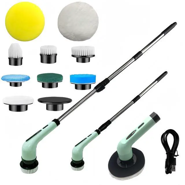 VERSATILE BRUSH SET: Complete cleaning kit includes 9 different brush head attachments for various surfaces including pointed head, flat-top, large flat, sponge, hook and loop, and polishing brushes