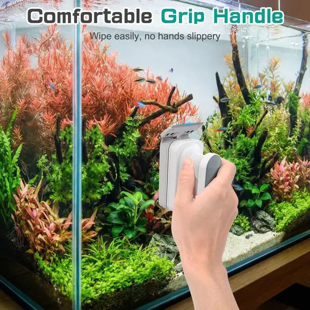 Comfortable Grip Handle: This fish tank glass cleaner designed with an ergonomic handle with comfortable grip and strong magnetic force for effortless cleaning, and comes in 3 sizes to fit most palm sizes.