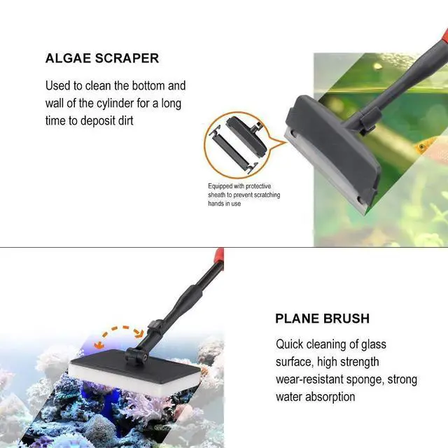 Simple and effective cleaning: closer to the glass for more thorough cleaning.With this 6 in 1 aquarium cleaning tool, maintenance the aquarium without wetting your hands.