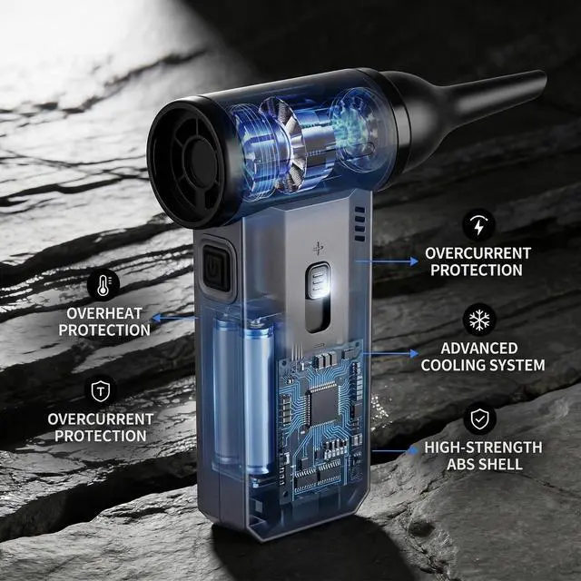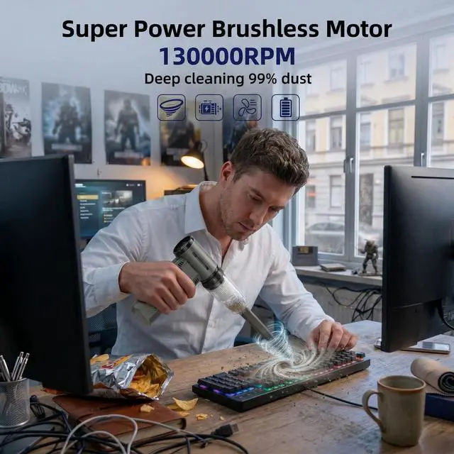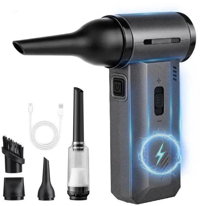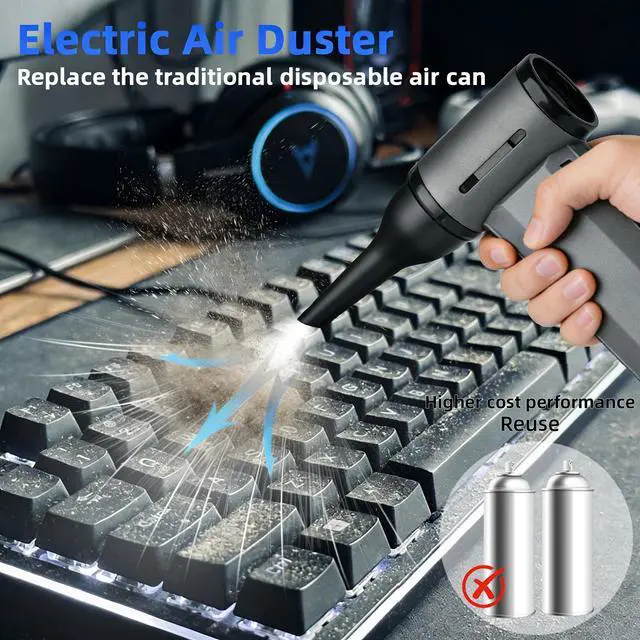 Massive 9000mAh Battery for 30-Min Marathon Cleaning: Stop settling for weak blowers that die mid-clean. Powered by an upgraded 9000mAh dual-battery system, our cordless air blower provides up to 30 minutes of continuous runtime on a single charge. Whether youre performing a deep PC cleaning kit overhaul or detailing your entire car interior, this rechargeable air duster has the endurance to finish the job. Fast-charging via Type-C ensures youre always ready for the next task.