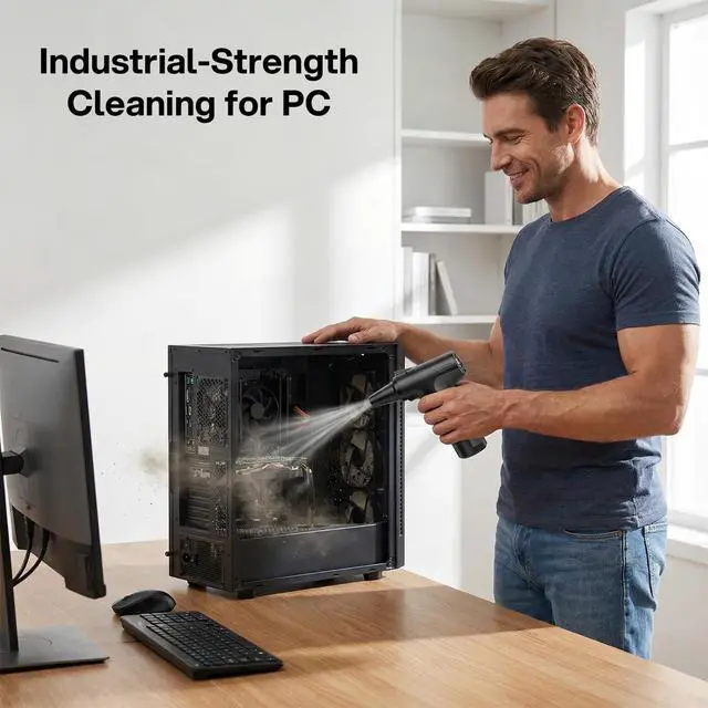 130,000 RPM Powerful Motor & 3 Adjustable Speeds Say goodbye to weak, expensive disposable air cans! Cleangor electric air duster is equipped with a turbo fan that spins up to an incredible 130,000 RPM, delivering industrial-strength airflow to blast away deep-seated dust from your precious electronics. Whether you need gentle cleaning for a camera lens or maximum power for a dusty PC radiator, simply short-press the power button to cycle through 3 speed modes and get the perfect airflow for any task.