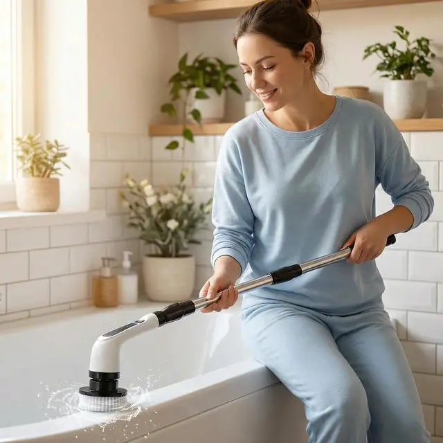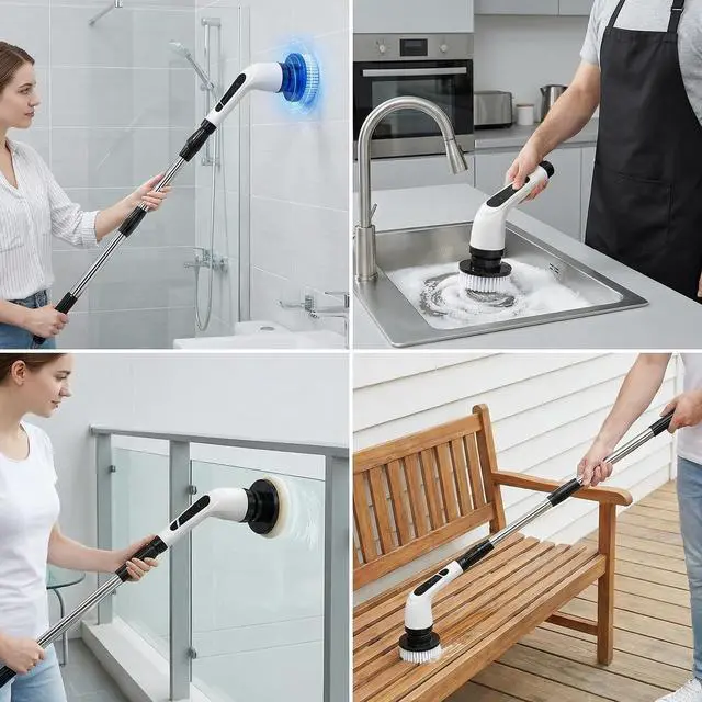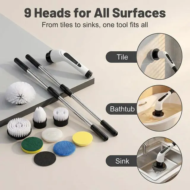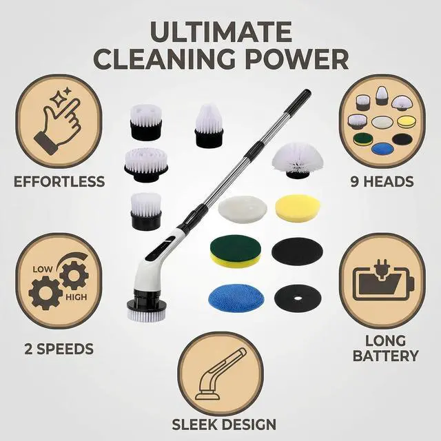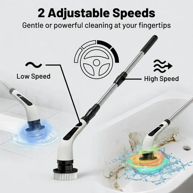 Transform your cleaning routine with the **Electric Spin Scrubber Ditch The Scrubbing!** This innovative long handle shower scrubber is designed to make tough cleaning tasks effortless and efficient. Equipped with **9 replaceable heads**, you can tackle a variety of surfaces, from tiles and tubs to sinks and countertops, ensuring a thorough clean every time. The **efficient 2-speed cordless brush** allows you to choose the perfect speed for different surfaces, maximizing your cleaning effect without the strain of manual scrubbing. With its powerful motor and ergonomic design, you'll enjoy a hassle-free experience that saves you time and energy. Plus, the **long battery life** means you can clean longer without interruptions, allowing you to achieve sparkling results in just minutes. Say goodbye to traditional scrubbing methods and hello to the future of cleaning with the Electric Spin Scrubber your ultimate ally for a spotless home!