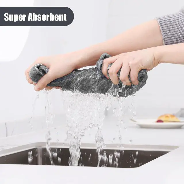 Absorbent: These dish towels are designed with exceptional absorbency in mind. They can quickly soak up water and other liquids perfect for washing dishes and cleaning countertops. The strong cleaning power helps remove stubborn stains and dirt leaving your kitchenware sparkling cleanLow
