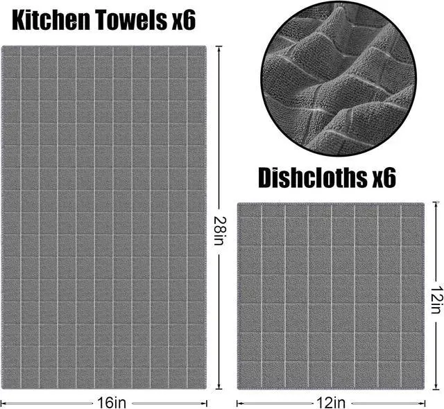 Usage: The collection includes 6 Pack 16 x 28 Inches & 6 Pack 12 X 12 Inches Not just limited to the kitchen these versatile dishcloths can be used for a variety of tasks. From wiping down surfaces in the bathroom to cleaning up spills in the living room they are a handy addition to any householdEasy to