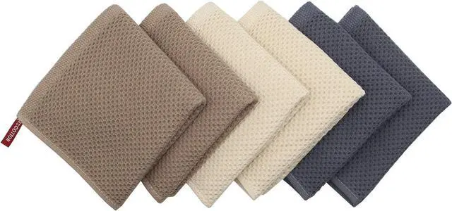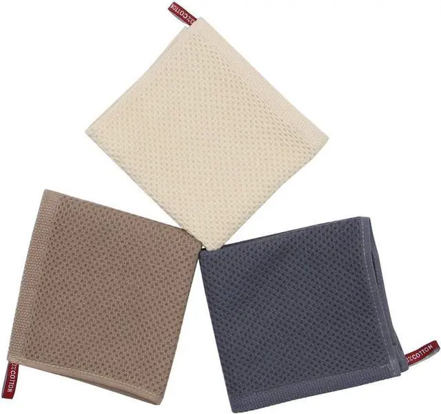 Cotton dishclothsHoneycombs designed with lightweight breathable and super absorbent. Extra soft and more perdurable to tackle all of your drying and cleaning kitchen task. Made with non-toxic dyes and a whole lot greener. Hanging hook design for easy to placement and dries. Machine Washable Kitchen Dishcloths