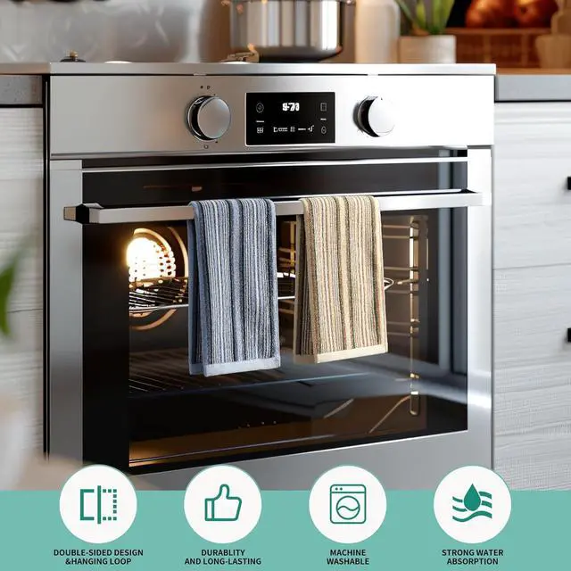 Large Size Dish Towels: The large size in 16 x 26 inches with hanging loop make the kitchen towels to be more user-friendly to drying dishes by covering the whole dish at one time and absorbing water droplet quickly.