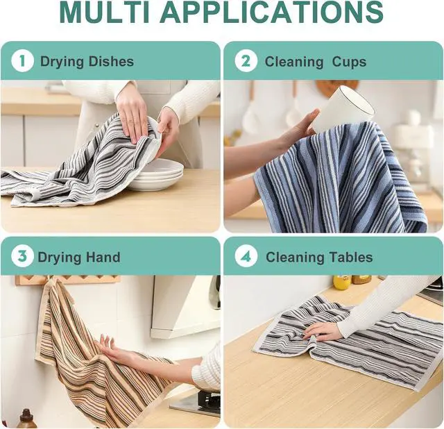 Large Thick Kitchen Towels: The thick kitchen dish cloths bring with a higher absorption and Long-lasting to the towels to stand with repeated uses and washings without deforming and losing softy.