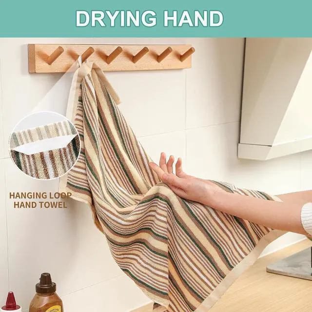 Terry Kitchen Hand Towels: Colorful Long Cotton Terries are densely woven on the towel the super softy and absorption make it suitable for cleaning drying hands dishes and quickly wiping spills on the stove or table without any worrying about scratches.