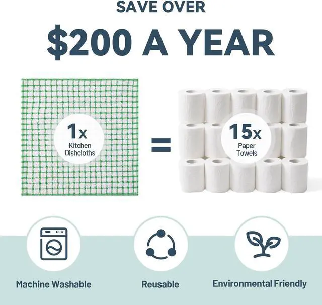 ?? Lint-free weave?? ensures no residue on dishes mirrors or furnitureReusable & Cost-Saving?? - Fabric dish cloths replace?? 1 000+ paper towels?? annually and?? save $200+?? while reducing waste. Cold-water machine washable?? (gentle cycle recommended) for easy maintenance