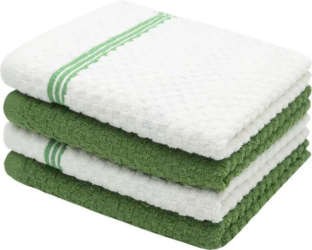 MiasDream Cotton Kitchen Towels Set of 4 Super Absorbent Dish Towels for Kitchen Drying Dishes Ultra Soft Hand Towels Tea Towels for Baking 15 x 25 Green
