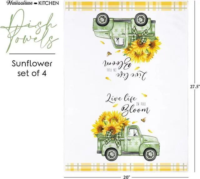 Delicate Design: Our dish towels have a delightful design featuring 4 different Watercolor Floral themes designs such as flowers mason jar arrangement vintage truck etc. These lovely and delicate designs will bring a festive spirit to your kitchen decor ideal for home decorationMeasurement: Each kitchen towel measures about 27.5 x 20 inch making it perfect for all your kitchen drying and cleaning needs. Absorbent texture and durable construction for everyday useWhere to
