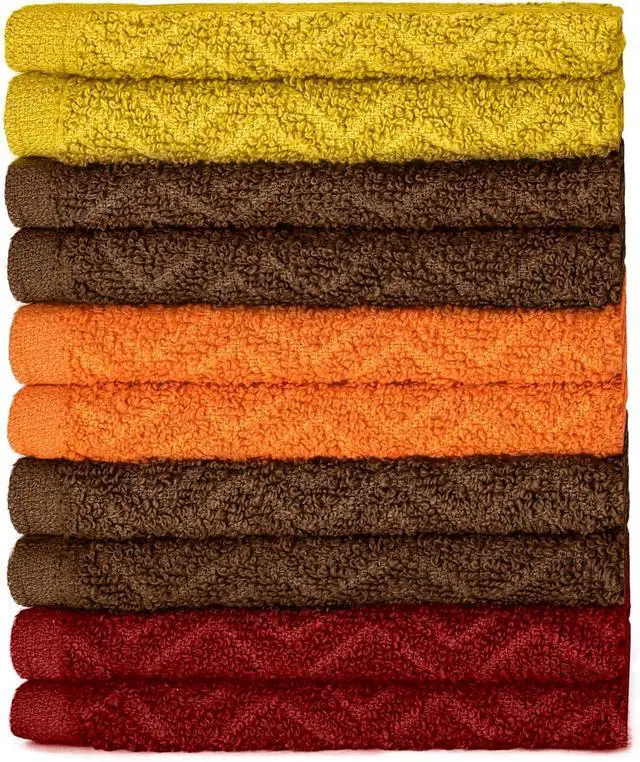 ??????????????????????????????????????????????????? Designed for long-lasting use these dish cloths can be machine washed and retain their quality even after multiple washes. Their durable construction helps them maintain their softness and absorbency over time making them a cost-effective addition to your kitchen.??????????????????????????????????????????????????? é?????? This pack of 10 dish cloths comes in an assortment of rustic earthy tones that complement any kitchen décor whether traditional or modern.