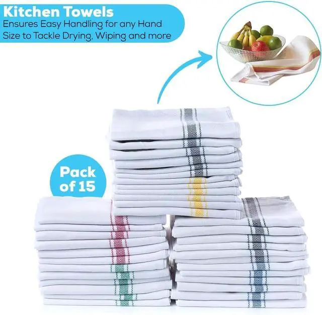 Paper Towel AlternativeSUPER ABSORBENT: Made from Tightly Woven Durable Fibers Using Herringbone Weave - Lightweight Super Absorbent and Can Dry QuicklKitchen Towels Measure 15 X 26 Inches - Ensures Easy Handling for any Hand Size to Tackle Drying Wiping and Cleaning In Restaurants Kitchens Dinner TablesFREE FROM HARMFUL CHEMICALS AND SYNTHETIC FIBERS: Completely Safe for Use by EveryoneIncludes the following