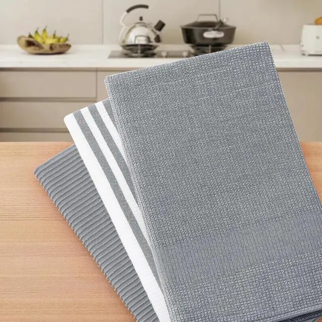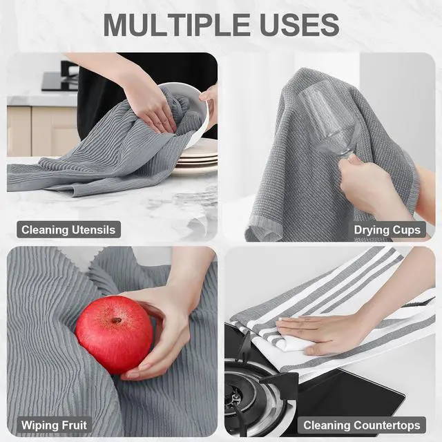 & Versatility: With a 380 GSM density these dish towels ensure superior absorbency and quick drying. They effectively clean spills dry dishes and wipe countertops. Their multi-purpose nature makes them ideal for various tasks in the kitchen bathroom and daily lifeVariety