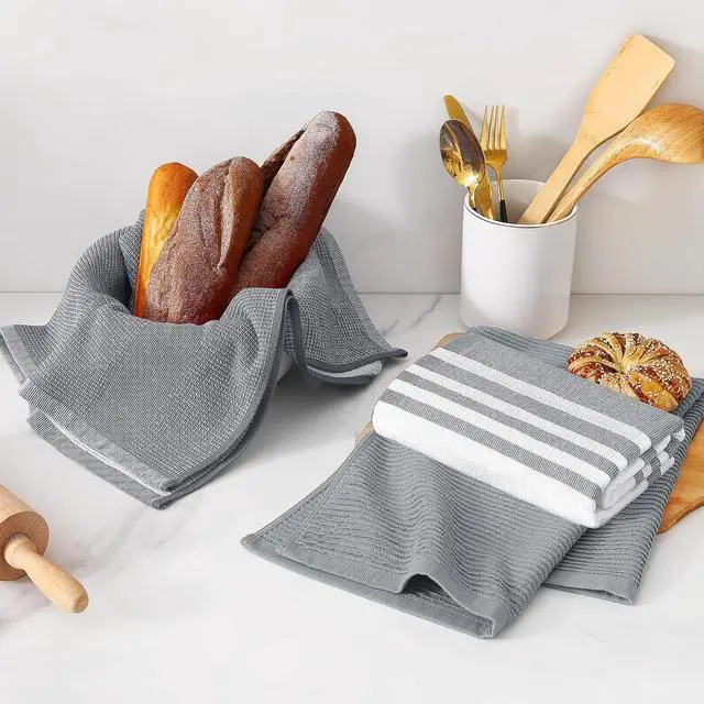 Premium Materials & Craft: Made from 100% ring-spun cotton our kitchen towels offer excellent softness durability and absorbency. The unique combination of terry ribbed and striped designs adds elegance and functionality to your kitchenAbsorbency