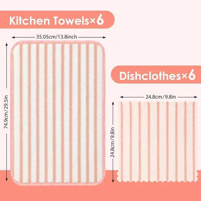 Great Value Set: Get 6 wash cloths and 6 dish towels for kitchen durable and cost-effective must-have for home kitchensSoft and