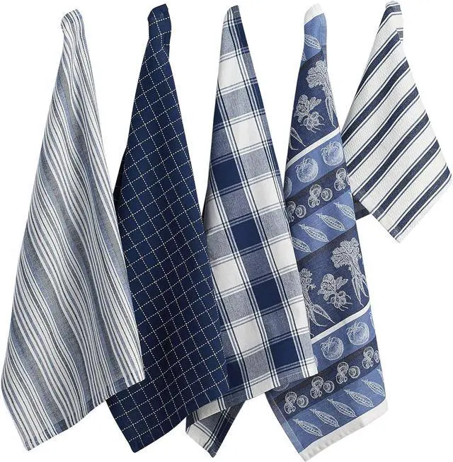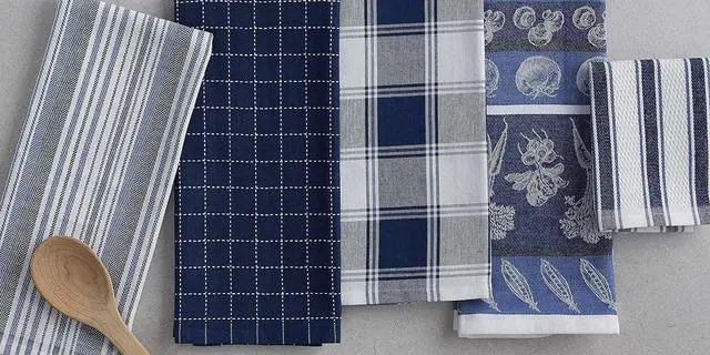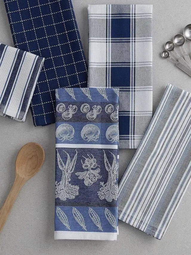 PolyesterSET INCLUDES: 4 dishtowels measuring 18x28 and 1 dishcloth measuring 13x13 in assorted patternsQUALITY