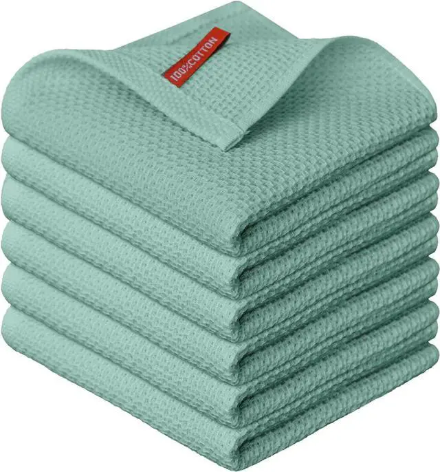 • Artoid Mode 100% Cotton Light Green Waffle Weave Kitchen Dish Cloths 12x12 Inch Ultra Soft Absorbent Quick Drying Kitchen Dish Towels Set of 6