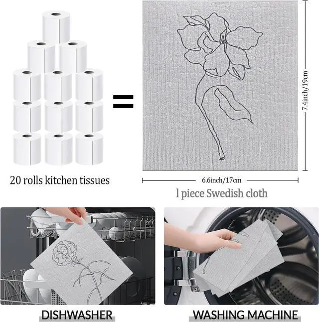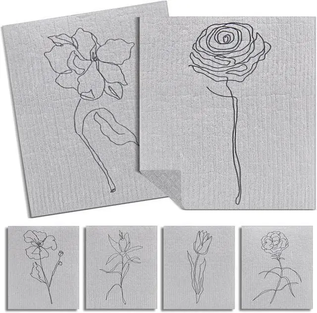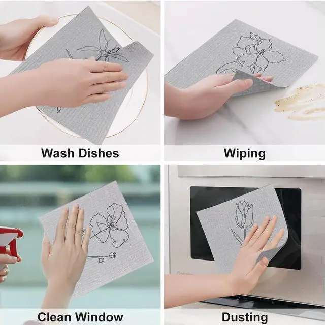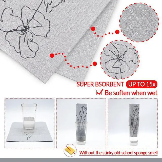 CottonReusable and Washable Material - The kitchen towels sets are made of cotton fiber and wood pulp the raw materials imported from Germany reliable materials can serve you for a long time breathable and smooth washable and reusable so buy with these Swedish dishcloth with confidenceEssential Kitchen Supplies with Effective Clean - The kitchen towels set can be washed up to 200 times and works effectively without hurting your plates or other items; It is an ideal replacement for sponges and paper towels each dish cloth becomes soft to the touch when wet and gritty enough for scouring when dryValue Pack - The package includes 6 pieces of Grey Flower bathroom towels which can meet your requirements for marble stainless steel tile and wood surfaces these kitchen dishcloths also work for scrubbing or drying dishes cups mugs sinks tubs and showers.