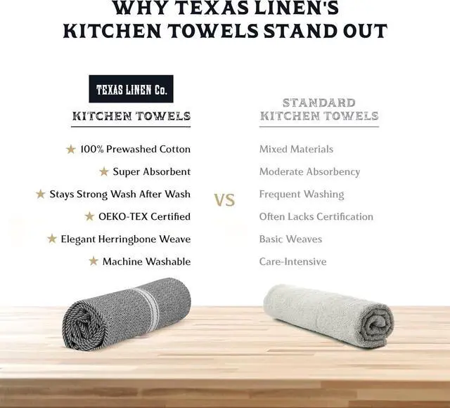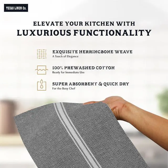 Cotton Kitchen Towel: Sizzle and shine in the kitchen with Texas Linen Co. s Kitchen Towels and Dishcloths. Made from 100% natural cotton with chambray fabric and herringbone weave these dish towels are super soft and absorbentand a better alternative to paper towel and microfiber wipes. These retro vintage kitchen essentials add style and function and elevate the look and feel of your kitchen decor. Quick Drying Towels -